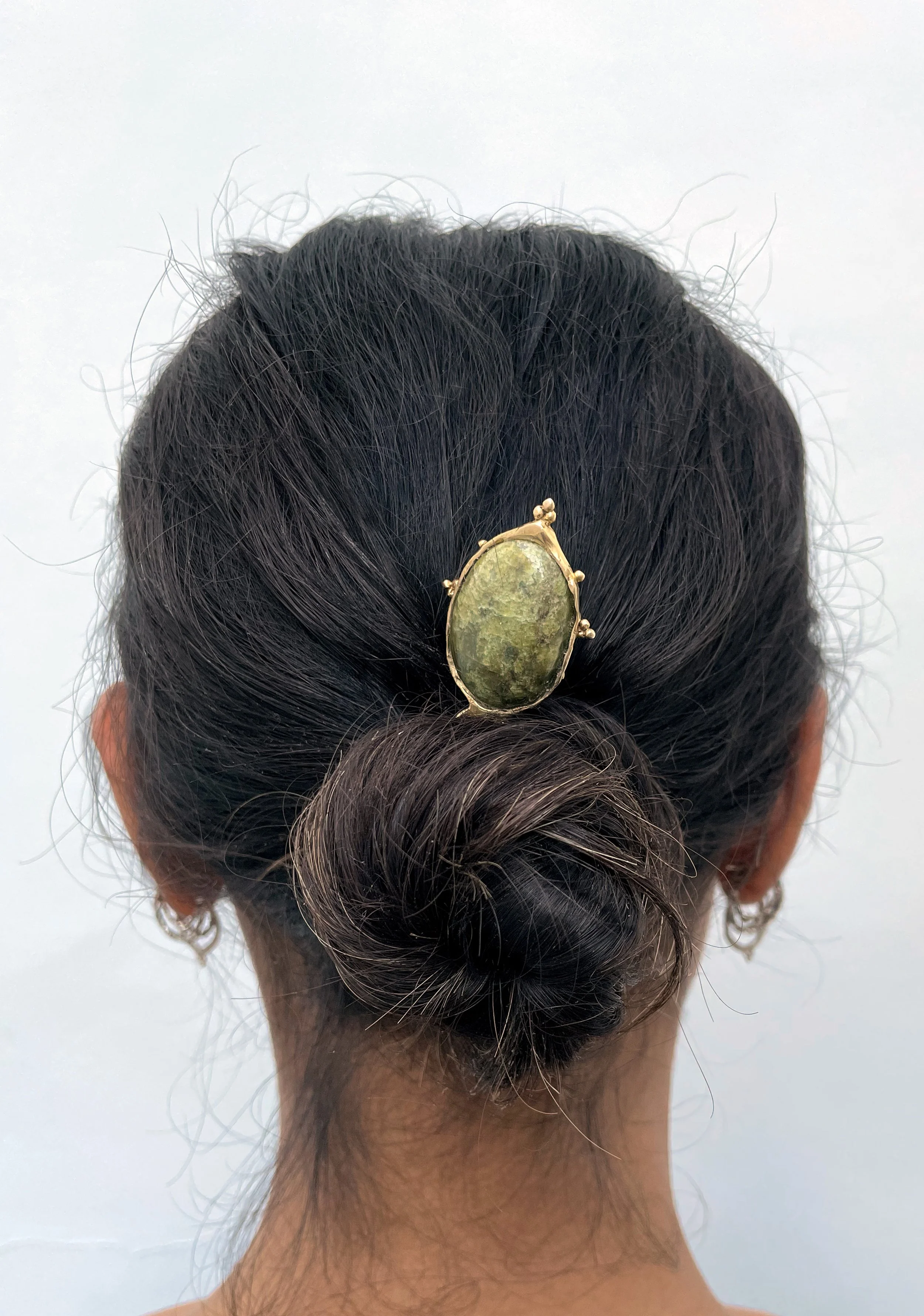 Solid brass hair pin with Serpentine to effortlessly put hair up before carrying out everyday tasks around the house.