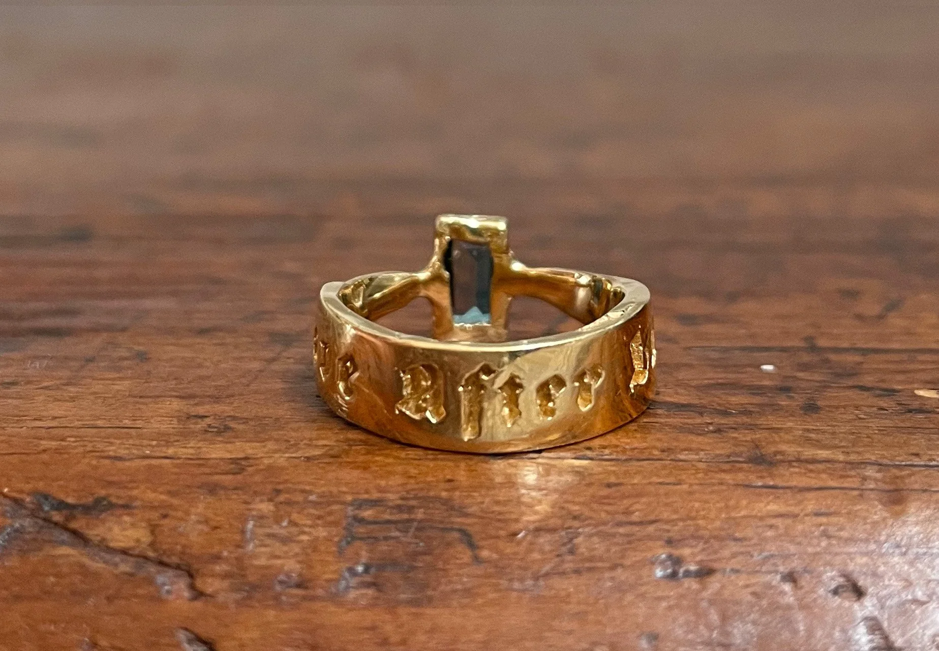 18ct gold ring inspired by the work of poet Derek Walcott. Inscribed with ‘Love After Love’ a poem about self compassion after a loss of a relationship.